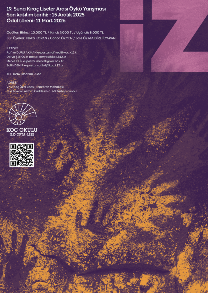 VKV Koç Lisesi Türk Dili ve Edebiyatı Bölümünün düzenlediği 19. Suna Kıraç Liseler Arası Öykü Yarışması’nın bu yılki teması “İz”.